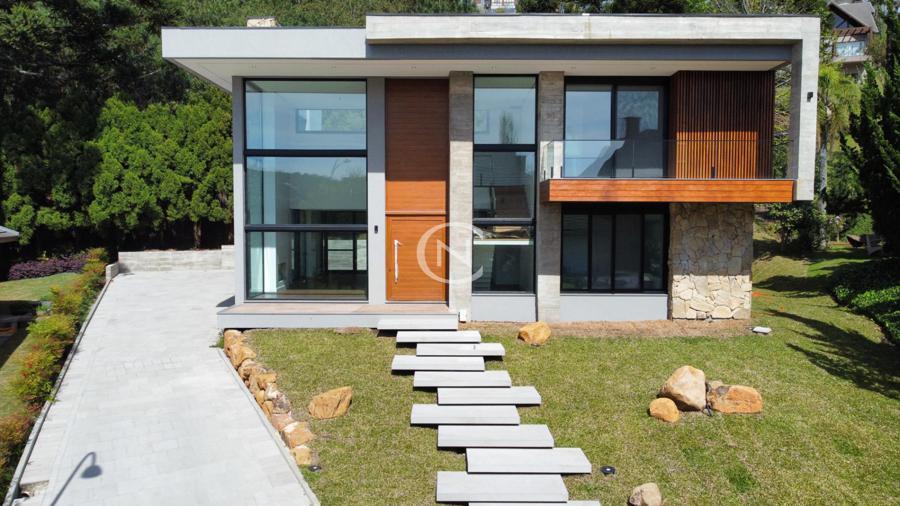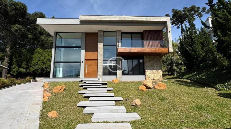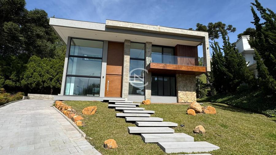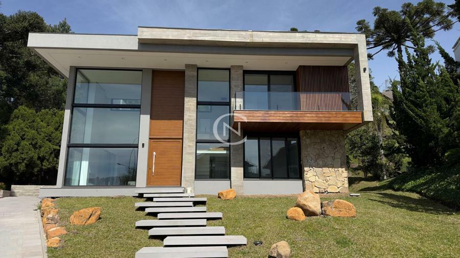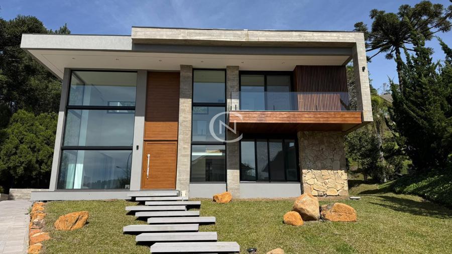 Charme, imponência e sofisticação definem esta casa em condomínio de alto padrão em Gramado, localizada no renomado Alphaville Gramado. O projeto combina o estilo serrano com elementos contemporâneos, criando uma residência única, com excelente padrão de acabamento e funcionalidade.